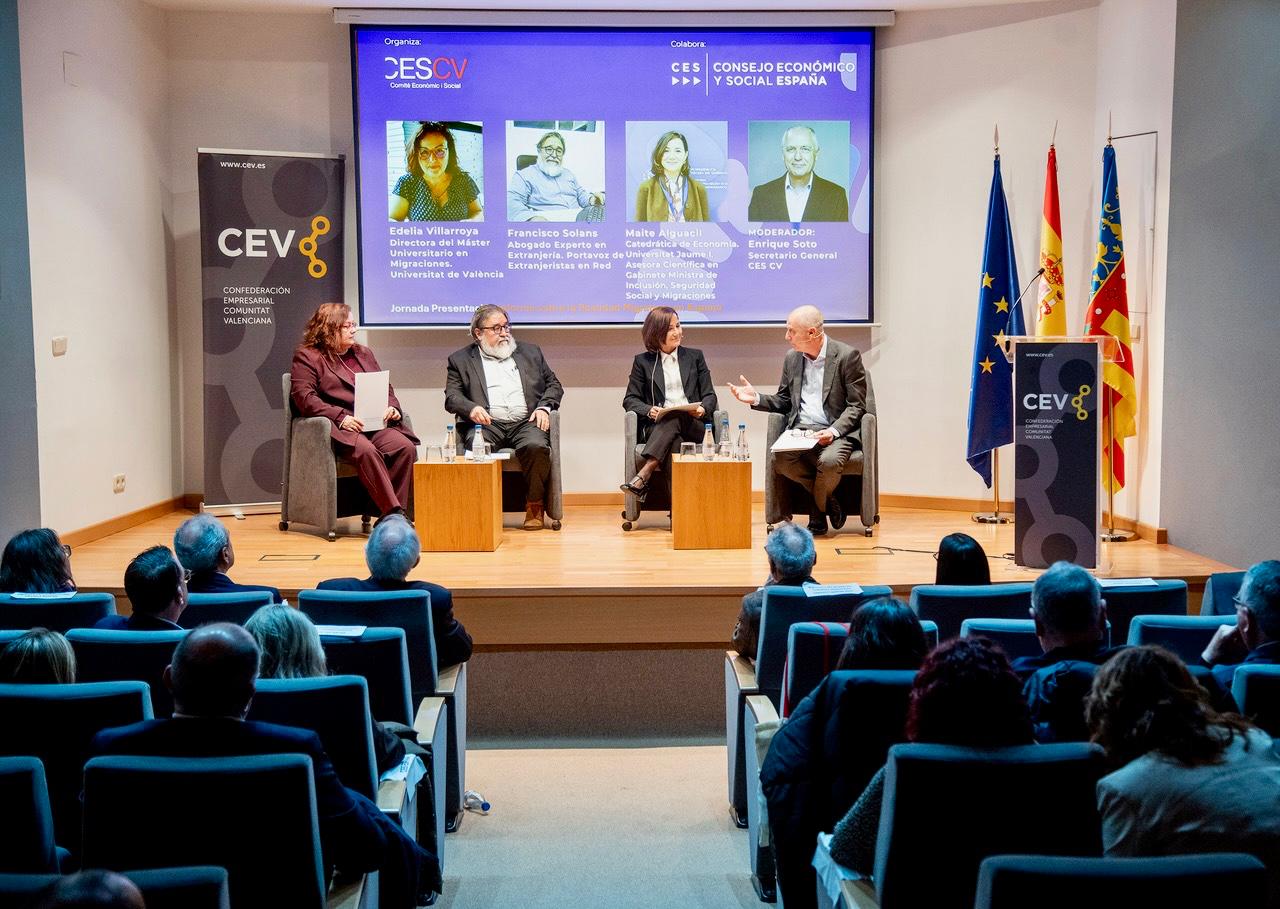 10 de febrer de 2026 – El Comité Econòmic i Social de la Comunitat Valenciana (CES CV) ha acollit este matí en la seu de la Confederació Empresarial Valenciana (CEV) la Jornada de presentació de l'informe “La realitat migratòria a Espanya: prioritats per a les polítiques públiques”. L'acte ha reunit representants institucionals, persones expertes i agents socials per a analitzar les principals tendències migratòries amb l'objectiu de garantir una gestió ordenada, segura i regular dels fluxos migratoris.